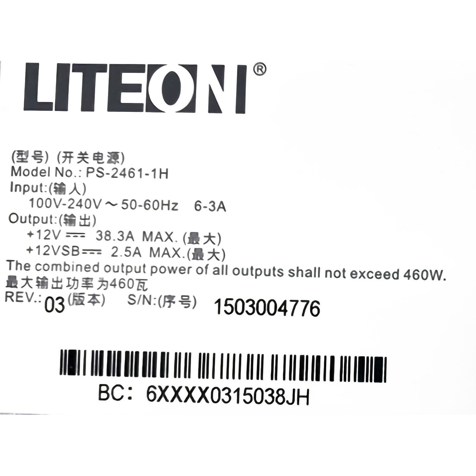 LiteON PS-2461-1H 03 1503004776 460 watt